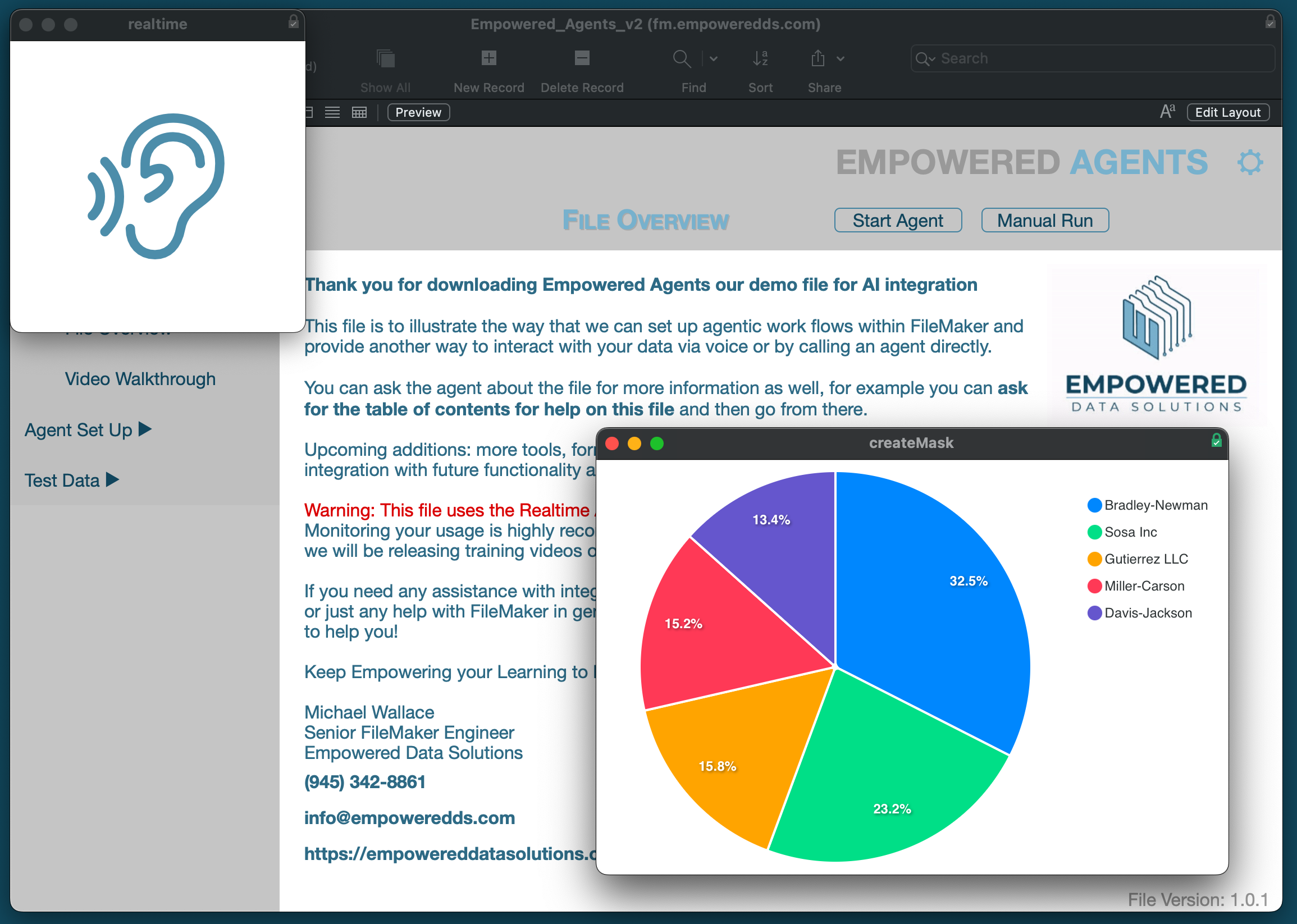 In the fast-paced wold of A.I. and agentic workflows, you need someone who has done their homework and understands the technology and how you can benefit from it. We have been working closely with Claris and have a large head start on most other developers in this area. With demo files already showing some ways we have used this functionality for other customers, you can feel confident working with us to bring this power to your systems.